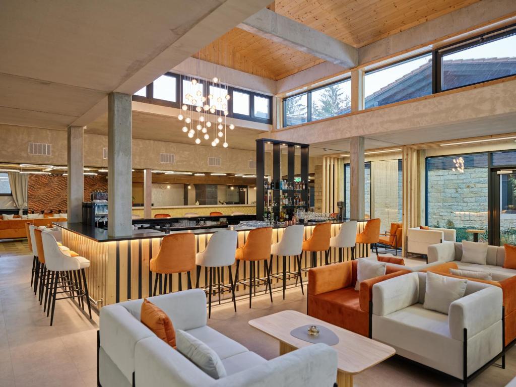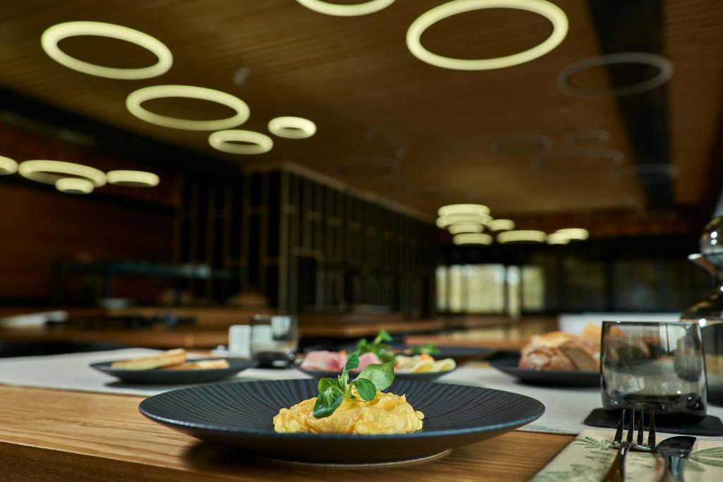 Starten Sie den Tag mit einem reichhaltigen Frühstücksbuffet oder kontinentalem Frühstück und genießen Sie regionale Spezialitäten im hoteleigenen Restaurant. Entspannen Sie anschließend in der Sauna, im Spa-Center oder im Innenpool. Das Hotel bietet zudem eine Bar, Terrasse und einen gepflegten Garten für erholsame Stunden im Freien.