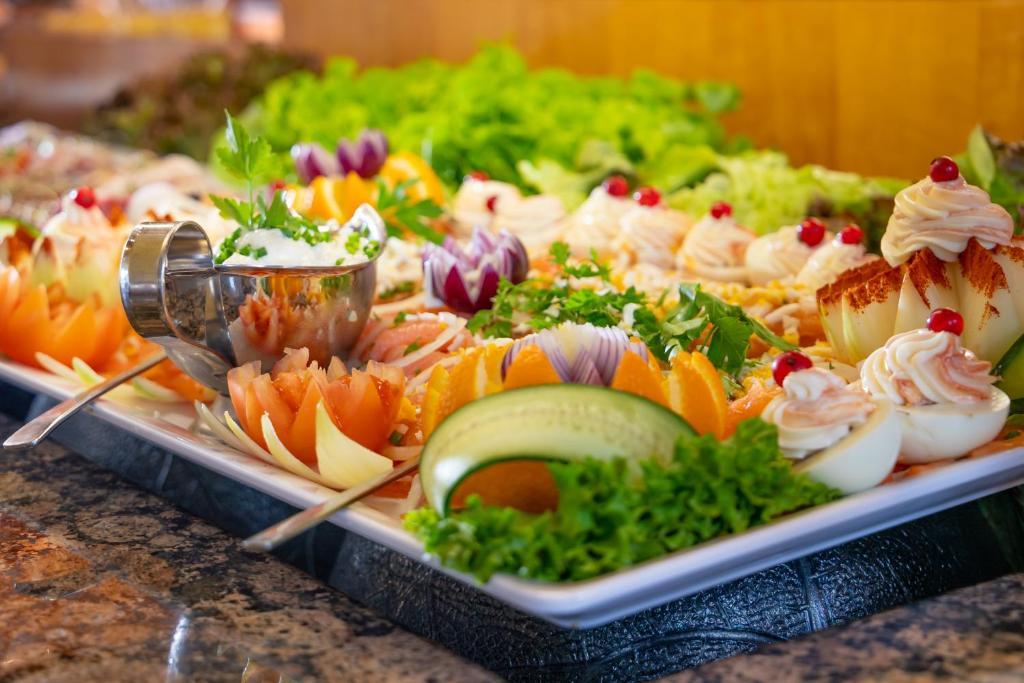 Am Morgen erwartet die Gäste ein abwechslungsreiches Frühstücksbuffet mit vegetarischen und veganen Optionen. Das Hotelrestaurant serviert regionale Harzer Spezialitäten, traditionelle Gerichte sowie leichte Vital- und Vollwertkost. Abends können Sie zwischen einem 3-Gänge-Menü oder einem Buffet wählen, je nach Planung des Küchenchefs.