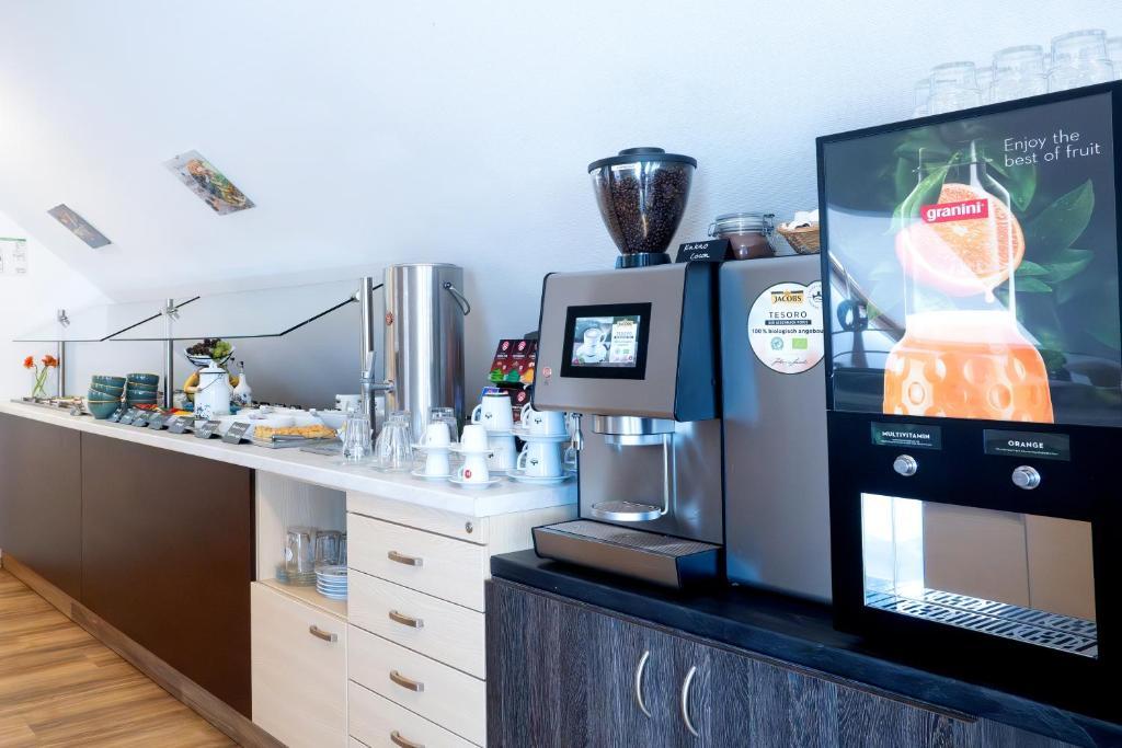 Einige Zimmer verfügen zusätzlich über eine Kitchenette mit Mikrowelle und Kühlschrank – perfekt für längere Aufenthalte oder Gäste, die gern selbst kleine Mahlzeiten zubereiten.