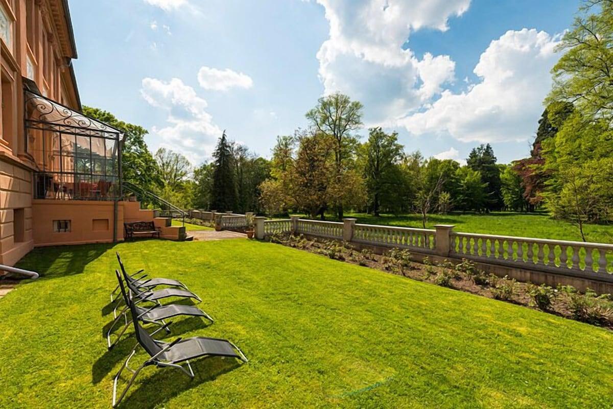 Der hinter dem Hotel gelegene Schlosspark mit seinem beeindruckenden alten Baumbestand lädt zu ruhigen Spaziergängen ein. Auch die nahe gelegene Elbe bietet ideale Bedingungen für Rad- und Wandertouren sowie Naturbeobachtungen.